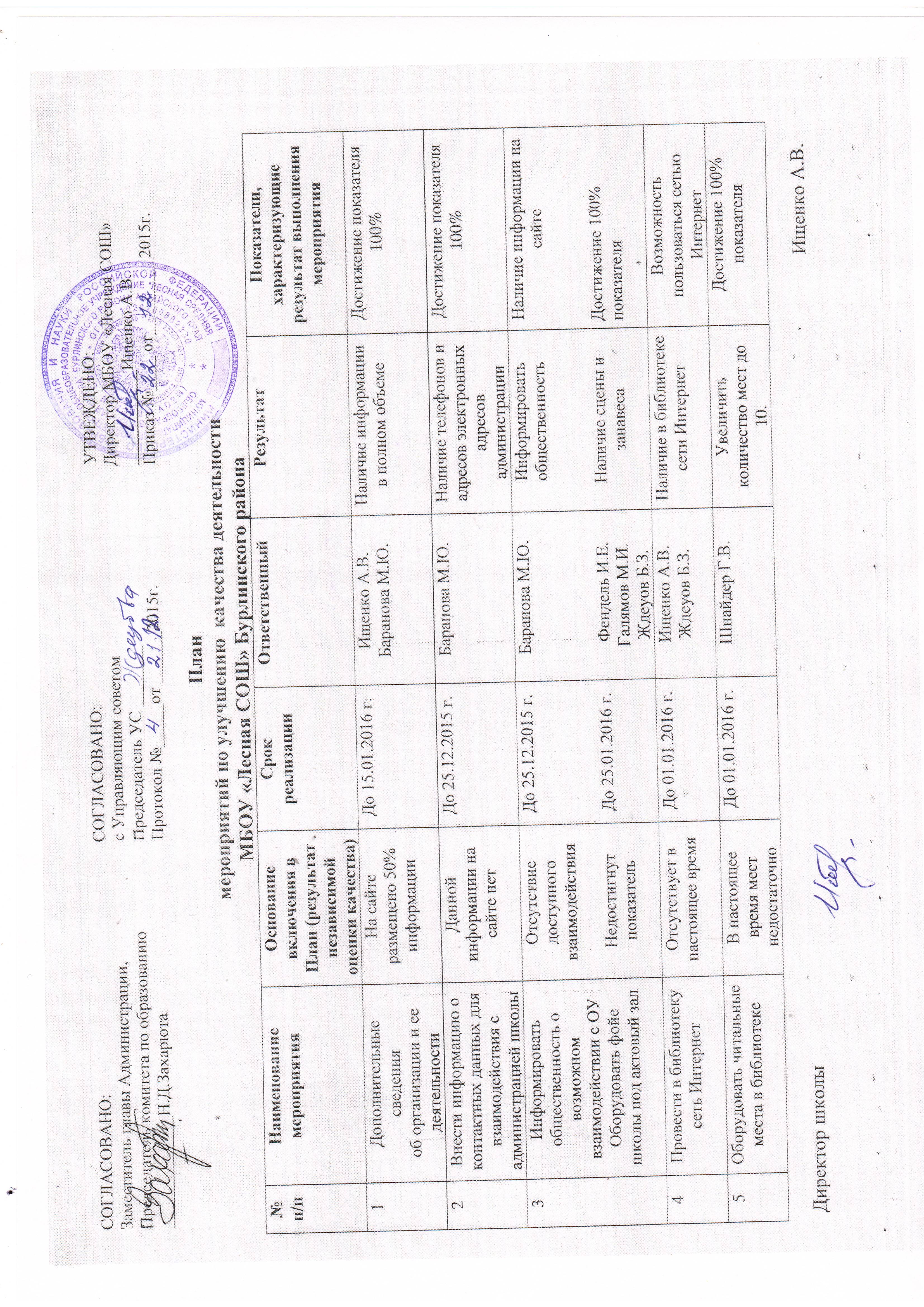 План мероприятий МБОУ “Бурлинская СОШ”