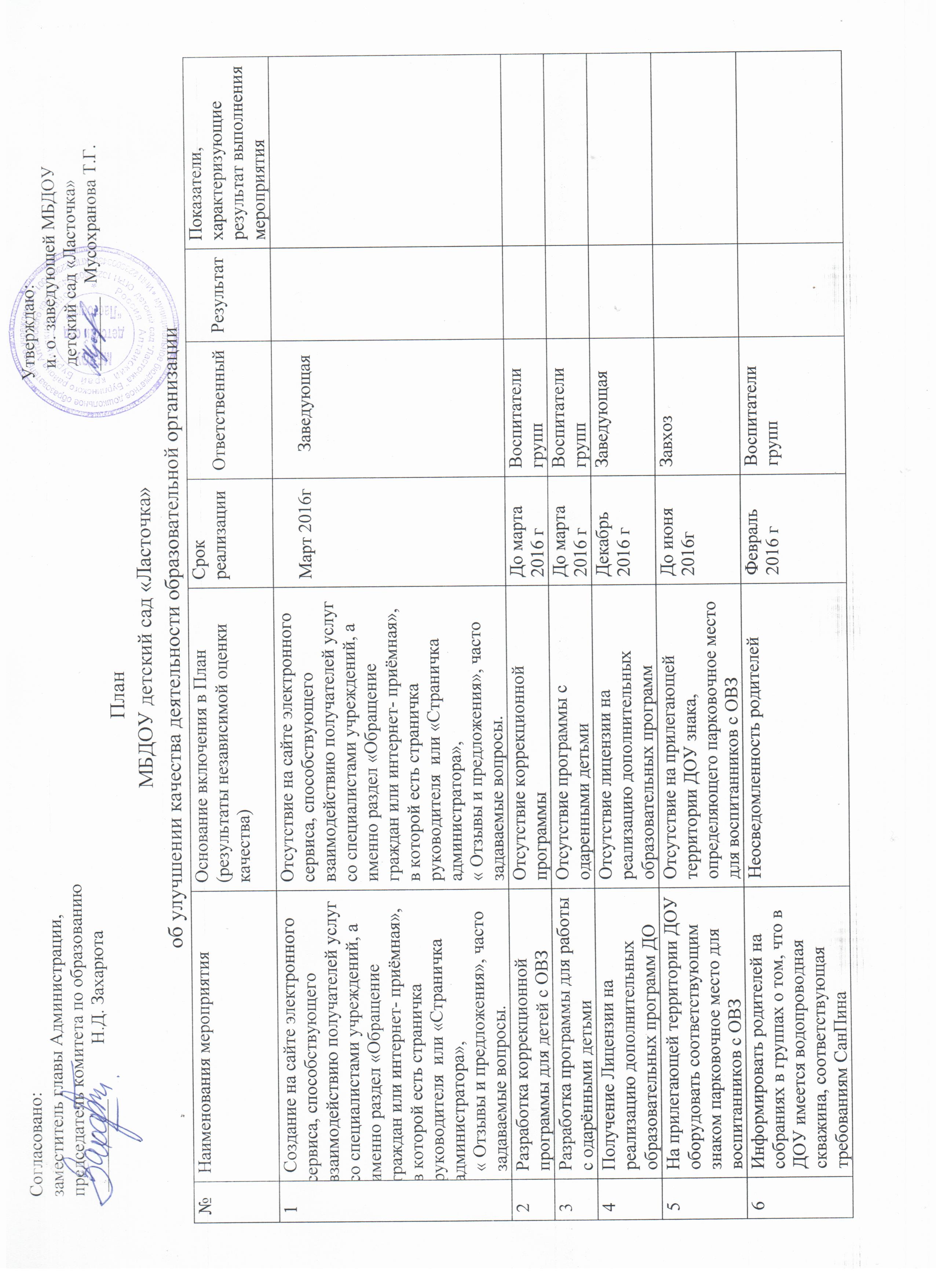 План работы комитета по образованию